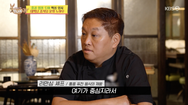 정호영은 홍콩을 픽한 이유로 식비의 60%가 외식인 환경과 1만 7천여개가 넘는 식당을 언급했다. 정지선 셰프는 “홍콩에 연평균 관광객 4500만 명이 온다”고 덧붙였다.