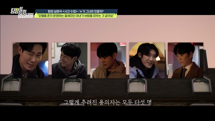6일 방송되는 채널A ‘탐정들의 영업비밀’의 ‘사건 수첩’에서는 모텔을 운영하는 아내의 외도를 의심한 남편의 의뢰가 다뤄진다. 의뢰인은 “혼자 모텔을 운영하는 아내가 바람을 피우는 것 같다”며 탐정단에 조사를 요청했다.