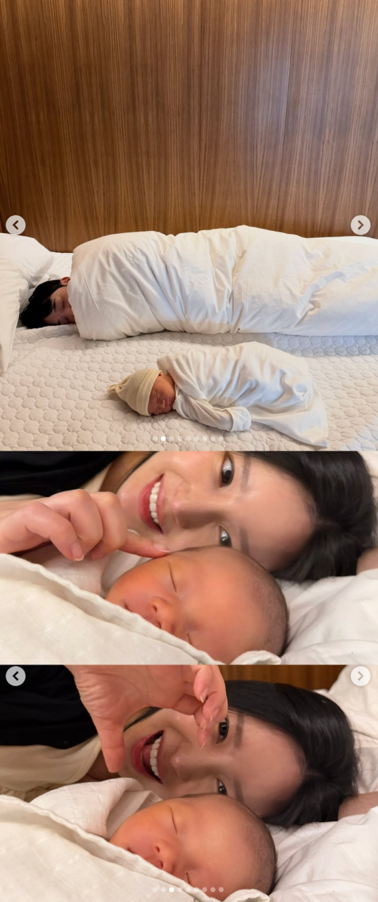 공개된 사진에는 조리원에 머물며 찍은 부부와 아이의 모습이 담겼다. 사진 곳곳에서 보이는 애정에 훈훈함을 자아낸다.