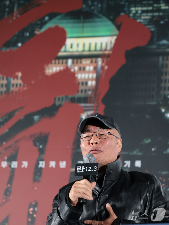 이명세 감독이 7일 서울 용산구 CGV용산아이파크몰에서 열린 영화 ‘란 12.3’ 언론시사회 및 기자간담회에 참석해 취재진 질문에 답하고 있다. ‘란 12.3’은 비상계엄 선포에 맞서 민주주의를 지키기 위해 나선 이들의 현장 기록을 담은 시네마틱 다큐멘터리다. 2026.4.7 © 뉴스1 권현진 기자