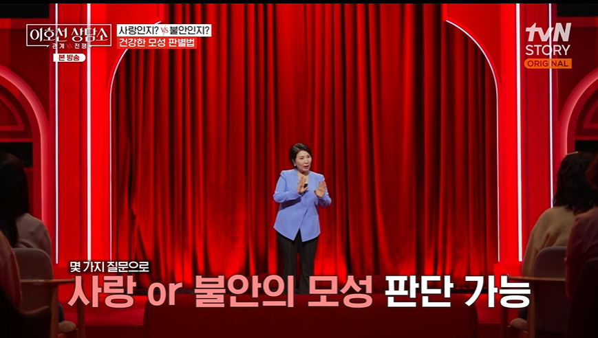 7일 방송된 ‘이호선 상담소’에서는 ‘자녀를 망치는 모성’을 주제로 강연이 진행됐다. 이호선 상담가는 모성을 크게 다섯 가지 유형으로 나누어 설명하며, 왜곡된 양육 방식의 위험성을 짚었다.