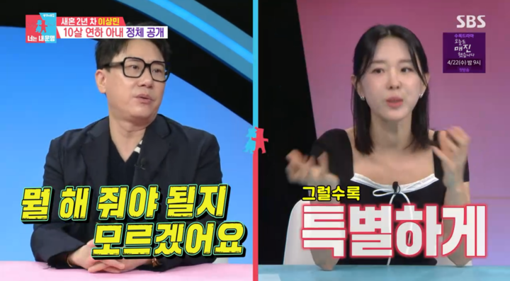 (MHN 김설 기자) 가수 이상민이 방송을 통해 베일에 싸여있던 10살 연하 아내에 대한 남다른 애정과 자부심을 드러냈다.
