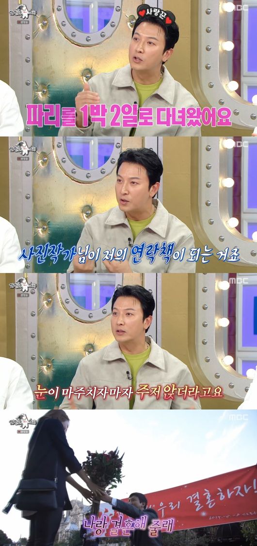 이어 “장모님이 ‘내가 너무 떨리는데 나한테 말을 하지말지. 내가 이걸 숨기고 있을 수가 없는데’ 하시더라. 단단히 마음 먹어야 한다. 절대 걸리면 안된다고 했다. 또 수로 형 지인 중에 파리 사는 분 있다. 그분들께 5~6시 노트르담 성당 앞 유람선에서 기타를 메고 나오겠다고 해서 도움을 받았다”라고 이야기했다.