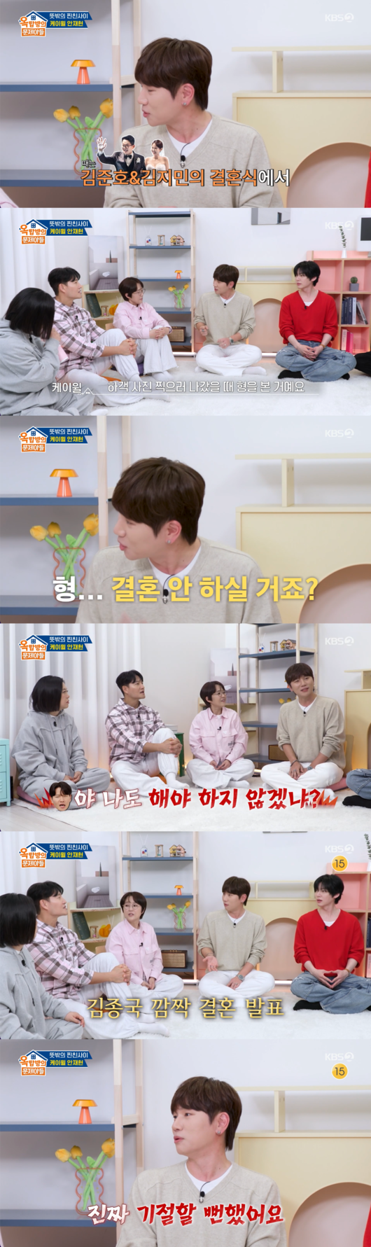 [OSEN=박근희 기자] '옥탑방의 문제아들’ 가수 케이윌이 김종국의 결혼 소식을 접하고 기절할 뻔했던 웃지 못할 에피소드를 공개했다.