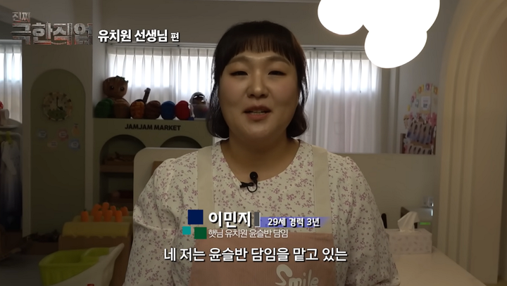 사생활 간섭에 대한 뼈 있는 농담도 던졌다. 압구정 로데오에서 교사를 봤다는 제보에 '클럽에 간 것 아니냐'는 추궁을 받자, 이민지 교사는 학부모 비위를 맞추며 당황하는 기색을 숨기지 못했다. 점심시간조차 아이들의 호출로 식사를 제대로 마치지 못하고, 마지막 아이를 하원시킨 밤늦은 시간에도 교구 제작과 알림장 작성 등 산더미 같은 잔업에 시달리는 모습은 현직 교사들의 깊은 공감을 자아냈다.