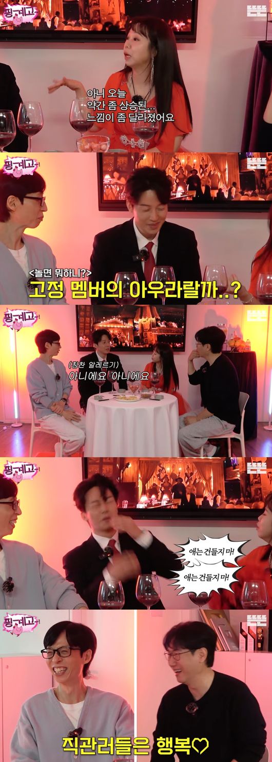 11일 오전 유튜브를 채널 '뜬뜬'을 통해 공개된 웹예능 '핑계고'는 '전성기는 핑계고' 특집으로 꾸며졌다. 이에 '계주' 유재석을 필두로 전년도 '핑계고 시상식' 대상 수상자인 지석진을 비롯해 최근 '대세'로 통하는 희극인 허경환과 홍현희가 함께 했다.