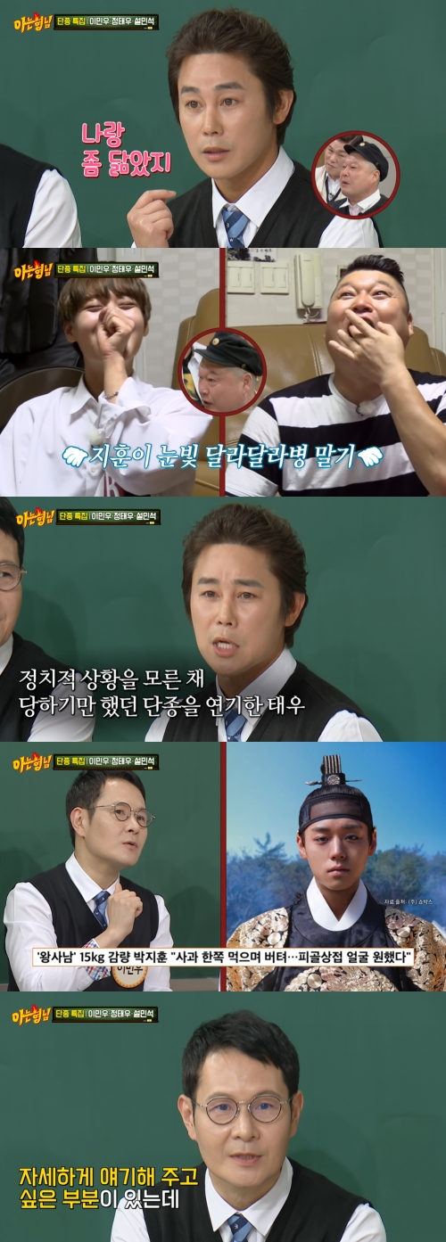 11일 오후 방송된 JTBC 예능 '아는형님'(이하 아형)에서는 '원조 단종'으로 유명한 배우 이민우와 정태우, 역사 일타 강사 설민석이 출연했다.