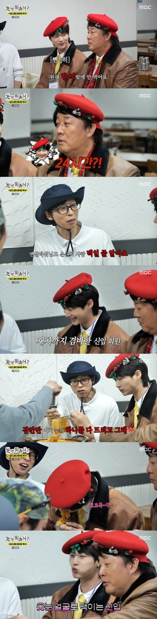 이를 본 정준하는 "나 그런 거 (안 익은 면) 좋아한다"고 했고, 변우석은 "그래요? 저도요"라며 폭풍 흡입했다. 유재석은 "내가 얘기했지? 얘가 은근히 사람 맥인 다니까"라며 신입 회원을 만족했다.