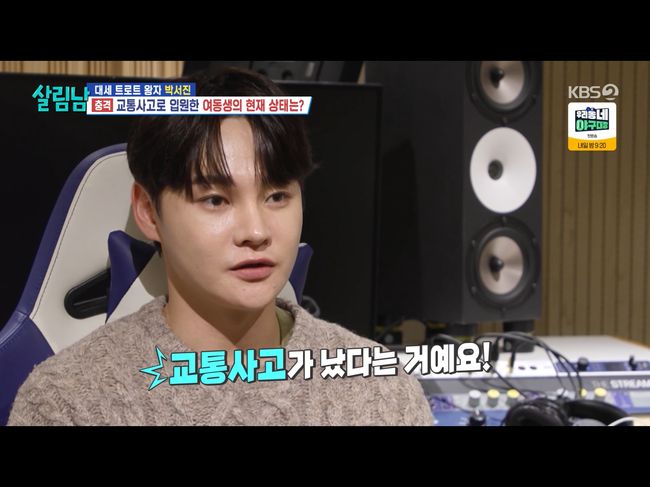 박서진은 “갑자기 박효정이 교통사고가 났다는 거다. 블랙박스를 보니까 되게 크게 났더라”라고 말했다. 블랙박스로 봤을 때 뒷차는 박효정 차 뒷부분에 들이 받을 때 엄청난 속력을 자랑하는 듯했다.