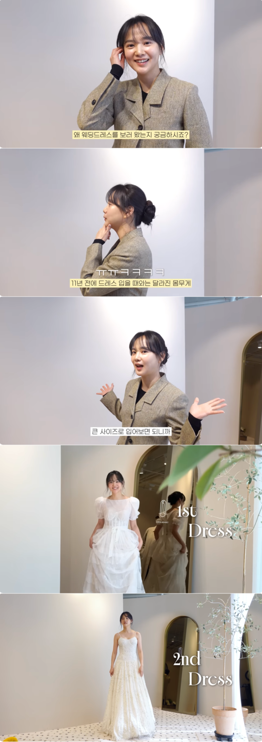 윤승아는 “웨딩드레스를 입어보러 왔다. 결혼을 다시 하나 궁금하시죠? 11년 만에 웨딩드레스를 입어볼 것”이라며 설레는 근황을 전했다.
