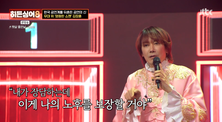 14일 방송된 JTBC ‘히든싱어8’에는 대한민국 공연계의 산증인이자 ‘기부의 아이콘’ 김장훈이 원조 가수로 출연했다. 단독 공연만 2,000회가 넘는 베테랑인 그는 “나만 못 나오나 싶어 민원까지 넣었던 프로그램에 나오게 되어 가수 인생 최고로 행복하다”며 남다른 출연 소감을 밝혔다.