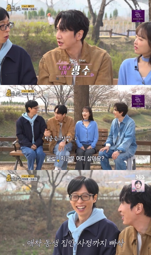 14일 오후 방송된 SBS 예능 프로그램 '틈만나면,'에는 배우 박보영, 이광수가 '틈 친구'로 등장해 MC 유재석, 유연석을 만났다.