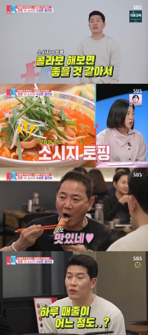 14일 오후 방송된 SBS 예능 프로그램 '동상이몽 2 - 너는 내 운명'에서는 메이저리거 출신 소시지 CEO 김병현이 짬뽕집으로 성공한 이봉원을 찾아갔다.