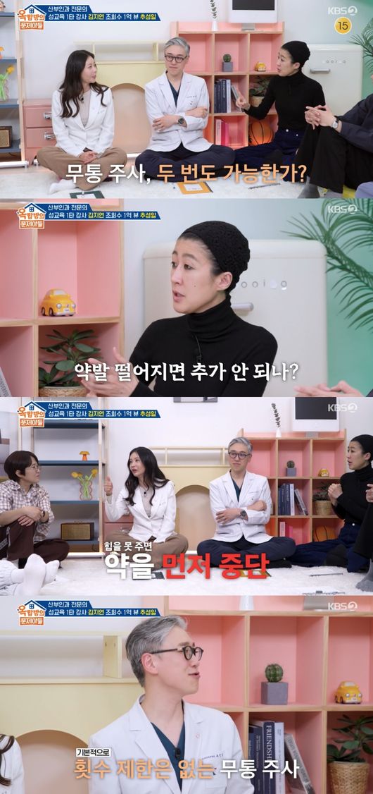 그러면서 홍진경은 “근데 무통주사 두번 못 맞는거죠?”라고 물었고, 김지연은 “두 번을 놓을 일이 없다. 그래본 적이 없다”라고 답했다. 이에 홍진경은 “약발 떨어지면 추가 안 되냐”고 되물었다.