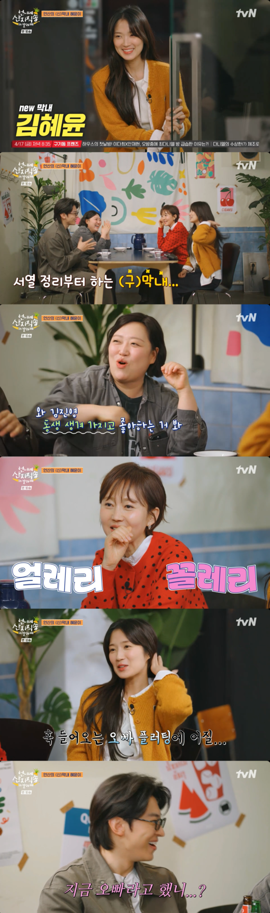 [OSEN=박근희 기자] '언니네 산지직송 in 칼라페’ 덱스가 새로운 막내 김혜윤의 등장에 광대 승천 미소를 감추지 못하며 능청스러운 매력을 발산했다.