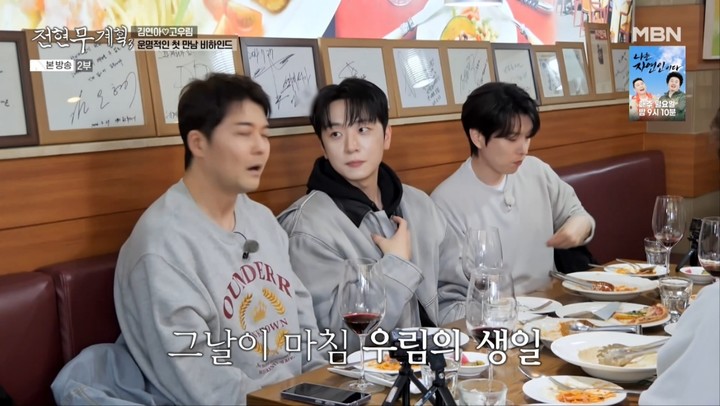 담담한 고백과 달리, 옆에 있던 멤버들의 반응은 전혀 달랐다. 강형호는 "이건 저희가 아는 것의 10%만 얘기한 것"이라며 "옆에서 보는데 '얘가 미쳤나' 싶었다"고 당시를 떠올렸다. 배두훈 역시 고우림이 안절부절못하던 모습을 직접 재연하며 현장을 웃음바다로 만들었다. 멤버들은 "그때 운명이었구나 싶었다"고 입을 모으며 로맨틱했던 상황을 전했다.