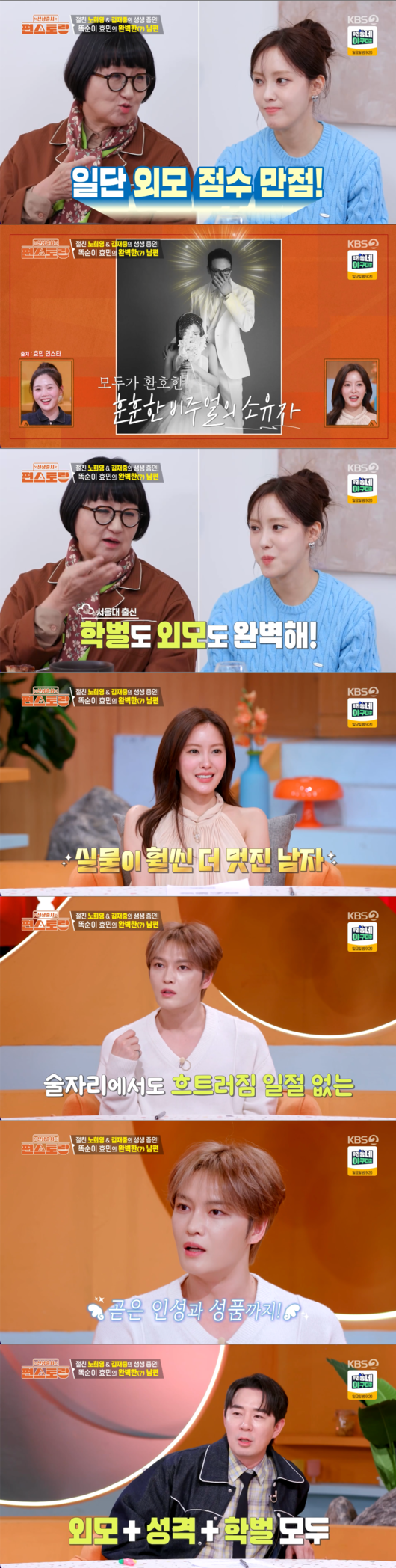 함께 출연한 김재중 역시 효민 연인의 실물을 언급하며 "실물이 엄청나다. 술 한 번 했는데 흐트러짐이 없다. 인성, 성품 다 좋다. 정말 완벽하시더라고요"라며 직접 겪은 일화를 통해 외모뿐만 아니라 내면까지 완벽한 '사기 캐릭터'급 스펙을 인증했다.