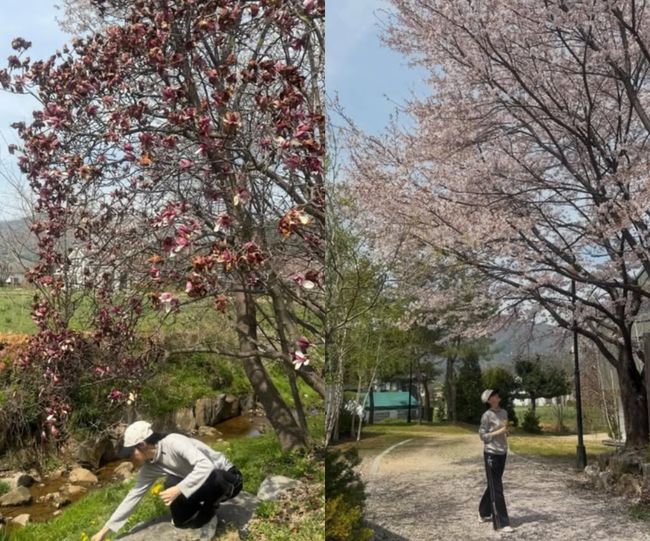 공개된 사진에는 이영애가 휠체어에 앉은 부친을 향해 한쪽 무릎을 꿇어 앉아 다정하게 웃어 보이는 모습이 담겼다. 지기 시작한 벚꽃 나무 사이 환한 이영애 부녀의 모습이 시선을 끌었다.