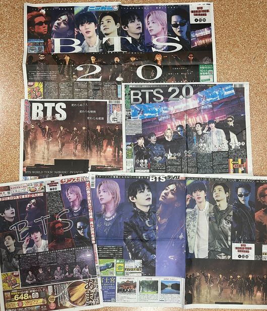 17~18일 일본의 5대 스포츠지인 닛칸 스포츠, 스포츠 닛폰, 스포츠 호치, 산케이 스포츠, 데일리 스포츠가 양일간 1면에 방탄소년단의 ‘WORLD TOUR ‘ARIRANG’ IN TOKYO’ 콘서트를 대서특필했다. 공연이 열린 도쿄돔 인근 편의점에는 해당 신문을 구하려는 관객들의 발길이 이어졌고 여러 점포의 신문이 이른 오전부터 빠르게 품절되는 등 현지의 높은 관심을 실감케 했다.