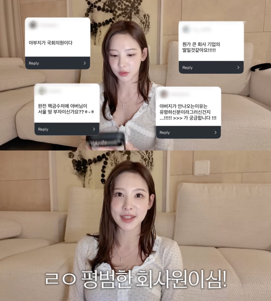 그러면서 “아버지 직업에 대해 되게 궁금해하시는데 그냥 평범한 회사원이다. 현업에서 계속 일을 하시다 보니 얼굴 노출을 최대한 안 하고 있다. 불편해 하기도 해서 나중에 은퇴하면 나올 수 있지 않을까. 그때까지 제가 유튜브를 열심히 해보도록 하겠다”고 나중을 기약했다.