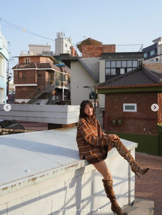 공개된 사진에는 브라운 색상의 미니스커트와 스트라이프 티셔츠를 입고 포즈를 취하고 있는 바다의 모습이 담겨 있었다. 특히 바다는 호피 무늬 롱부츠로 포인트를 주며 개성 있으면서 강렬한 패션을 완성해 시선을 집중시켰다.