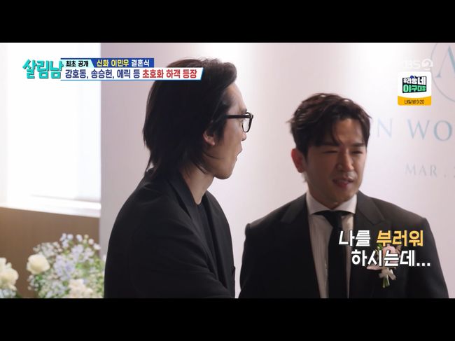 이민우와 이아미가 결혼식장에 나타났다. 수많은 하객이 등장했다. 강호동은 여전한 모습으로 나타나 박서진을 깜짝 놀라게 했다. 한때 강호동 프로그램에서 어린 가수로 나타났던 박서진은 "강호동은 하나도 안 변했더라"라고 말했다.