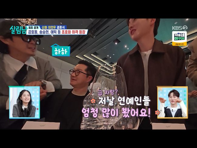 하객들은 내로라하는 연예인들이 참석했다. 리더 에릭은 나혜미와 함께 두 아들과 어머니를 모시고 왔다. 은지원은 “에릭은 2017년에 배우 나혜미랑 결혼 후 육아 전념 중"이라면서 어머니들끼리 돈독하게 인사하는 걸 보고 감탄했다. 또한 송승헌이 등장하자 이민우의 어머니는 “장가 갔냐? 이민우 부러워하지 말고 결혼해”라며 친밀하게 인사했다.