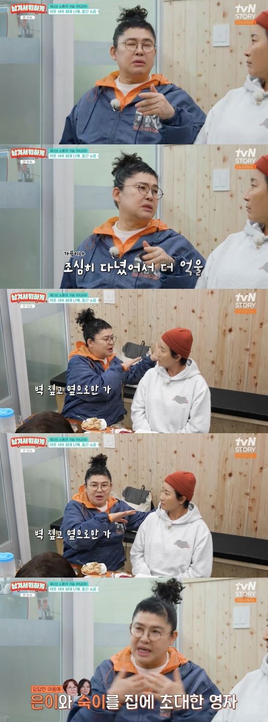 이영자는 “옛날에 일산 살 때다. 조금만 움직이면 아랫집에서 바로 올라오더라. 슬리퍼도 사다 주더라. 나는 슬리퍼도 신고 있는데 억울한 것이다”라고 자신의 경험담을 밝혔다.