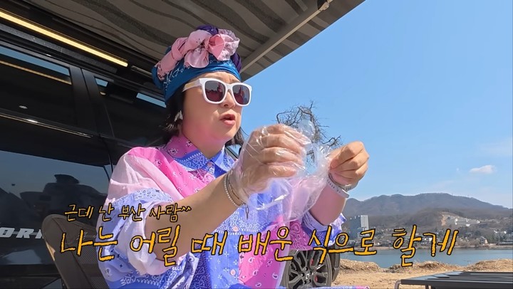 (MHN 박선하 기자) 방송인 김숙이 차박 캠핑 속 '충무김밥 한상'로 보는 재미와 먹는 재미를 선사했다.