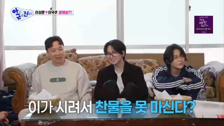 이어 던 특유의 '연약 캐릭터'가 이어지며 예상치 못한 에피소드가 쏟아졌다. 그는 "이빨이 시려서 찬물을 못 먹는다"며 "집에는 찬물 나오는 정수기가 없고, 정수도 데워서 먹는다"고 밝혀 놀라움을 안겼다.