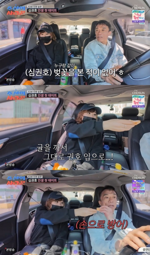 심권호가 의정부에 있는 그녀의 집 앞에서 기다렸다. 차에 타서는 손이 닿는 등 자연스러운 스킨십이 이어져 설렘을 안겼다. "벚꽃 보고 싶어", "오빠 옷 예쁘게 입었네?"라는 그녀의 말이 심권호를 더 설레게 했다.