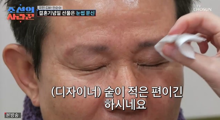 인순이의 '사죄 이벤트'는 여기서 끝이 아니었다. 식사 후 그녀는 남편을 데리고 한 성형외과를 방문하는 파격적인 행보를 보였다. 평소 눈썹이 옅어 매일 아침 직접 눈썹을 그리고 다니는 남편을 위해 '눈썹 문신'을 결혼기념일 선물로 준비한 것.