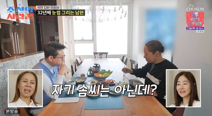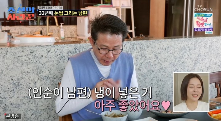 이날 방송은 무대 위 화려한 디바가 아닌, 서툴지만 진심을 다해 남편을 챙기는 '아내' 인순이의 인간적인 면모를 비추며 시청자들에게 기분 좋은 미소를 안겼다.
