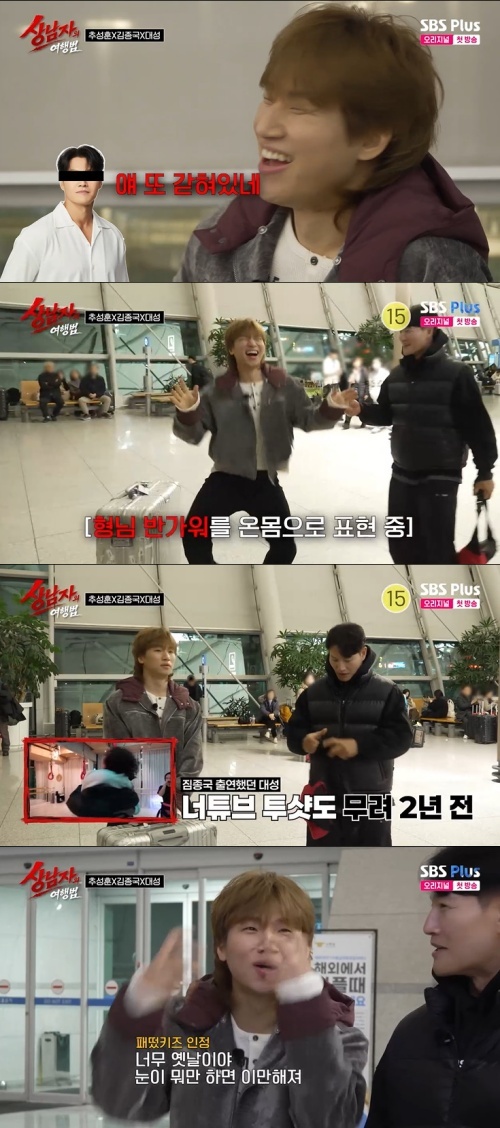 21일 오후 방송된 SBS Plus 예능 프로그램 '상남자의 여행법 in 규슈'에서는 가수 김종국과 빅뱅 멤버 대성, 이종격투기 선수 추성훈이 공항에서 만나 이목이 쏠렸다.