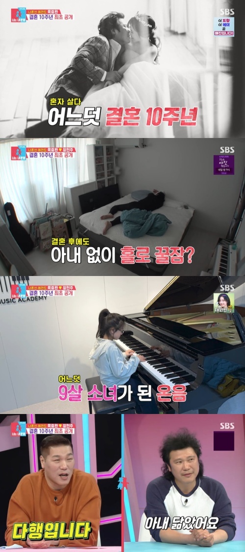 21일 오후 방송된 SBS 예능 프로그램 '동상이몽 2 - 너는 내 운명'에서는 가수 육중완이 아내 정현주 씨와 결혼 생활을 최초 공개했다.