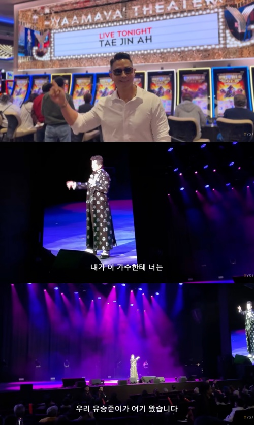 유승준은 콘서트를 보기 위해 이동하는 차 안에서 "우리 태진아 선생님 오래간만에 인사도 드리고"라며 들뜬 기색을 보였다. 이어 그는 태진아 콘서트를 안내하는 카지노 전광판 풍경 등을 담아냈다.