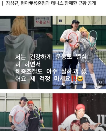 이 가운데 지난 23일 장성규가 현아, 용준형 부부와 테니스를 즐긴 근황을 공개한 바. 장성규는 "테니스 천재 탄생. 용준형, 현아. 준형이 무릎 피멍에도 불구하고 불태우는 모습 멋지다. 그리고 그들의 따뜻한 생일 축하"라며 현아, 용준형 부부를 축하했으나 불똥은 다시 현아의 체중관리로 튀었다.