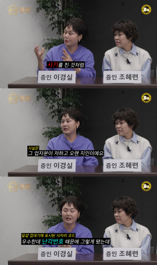 이경실은 “사실은 내가 무슨 달걀로 사기를 친 것처럼 한때 이렇게 여론화됐었는데 그 업자분이 나하고 오랜 지인이다. 그분이 정말 그분 인생에 있어서 달걀의 사료만의 인생의 한 3분의 1을 연구했다고 하는 분이다. 그래서 그 달걀이 굉장히 우수하다"고 말했다.
