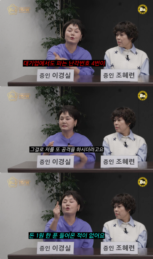 이경실은 데뷔한 지 40년이 다 되간다고 했다. 개그맨 최성민은 “그만큼 오래했지만 정말 논란도 엄청 많다”고 말문을 열었다.