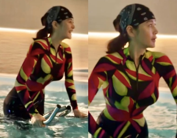 공개된 사진 속 김혜수는 실내 수중 운동을 즐기는 모습이다. 김혜수는 화려한 색감과 패턴이 돋보이는 운동복을 착용했으며 군살 없이 완벽한 몸매를 자랑해 감탄을 자아낸다.