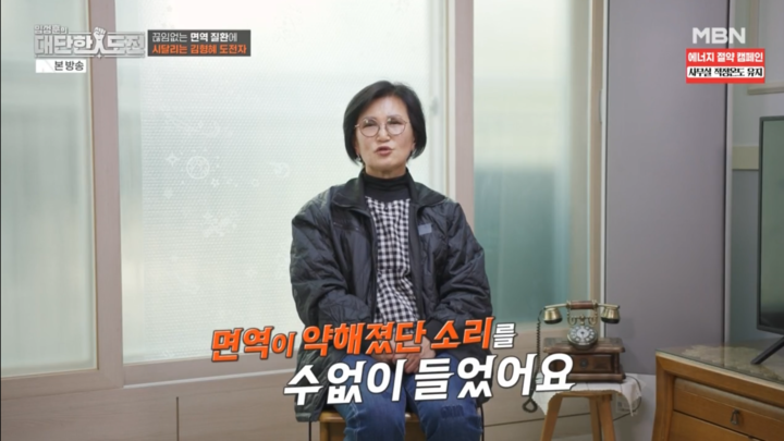 이날 방송에서는 고된 노동과 불규칙한 생활로 면역력이 무너진 사례자들이 출연했다. 60대 사례자 장 씨는 관절 수술 이후 떨어진 면역력으로 인해 호흡기 질환과 폐렴, 대상포진을 잇달아 겪으며 신체적 고통을 호소했다.