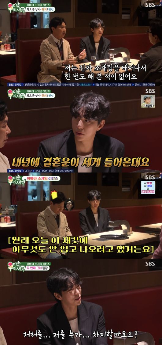이날 윤현민은 “저는 진짜 소개팅을 태어나서 한 번도 해 본 적이 없다. 저는 대학을 안 갔기 때문에 중, 고등학교도 남자 학교고”라고 소개팅 하는 이유를 밝혔다.