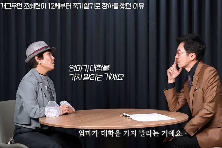 지난 26일 공개된 채널 '책과삶' 영상에서 조혜련은 초등학생 시절부터 시장에서 장사를 했던 경험을 고백했다. 그는 "초등학교 5학년 때부터 안양시장에서 장사를 했다. 아버지가 짐자전거로 쑥갓을 가져오면 내가 거의 다 팔았다"고 말문을 열었다. 이어 "노점에서 중학교 2학년 때까지 계속 일했다"고 회상했다.