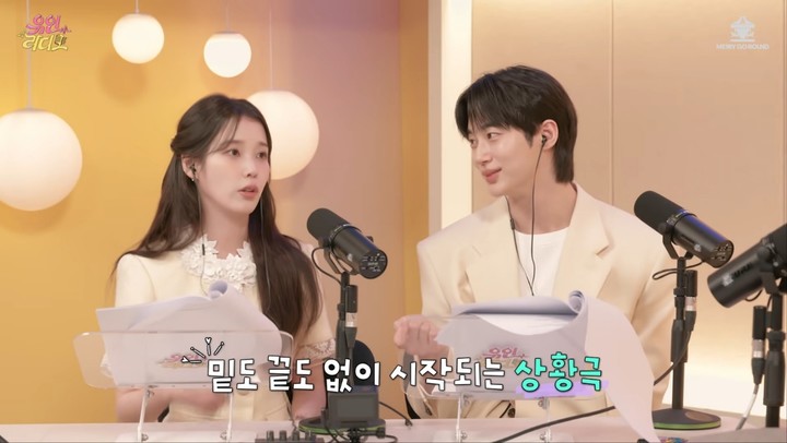 영상에는 드라마 '21세기 대군부인'에 출연 중인 아이유와 변우석이 게스트로 등장해 MC 유인나와 유쾌한 토크를 펼쳤다. 작품 속 호흡만큼이나 자연스러운 두 사람의 '현실 케미'가 그대로 드러났다.