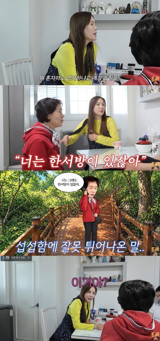 또 어머니는 “하루는 뒷산 갔는데 사람이 하나도 안 오고 나 혼자 걸어갔다. 기특한 거다. 내 자신이 그래서 영란이한테 자랑했다. 근데 딸이 막 소리 지르면서 ‘나도 있고 한서방도 있고 오빠도 있는데 왜 그런 소리하냐’고 하더라”라며 지난 일에 대한 서운함을 토로했다.