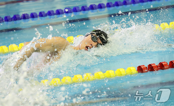 황선우는 20일 부산 사직종합운동장 실내수영장에서 열린 전국체전 경영 남자 일반부 자유형 200m 결선에서 1분43초92의 기록으로 가장 먼저 터치패드를 찍었다.