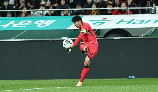 18일 서울 마포구 서울월드컵경기장에서 열린 남자축구 국가대표 A매치 평가전 대한민국과 가나의 경기. 손흥민이 슛을 하고 있다. 사진=연합뉴스
