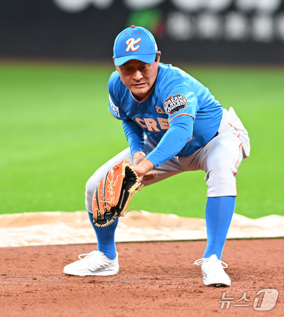 이종범이 29일 일본 에스콘필드 홋카이도에서 한일 야구 레전드 선수 간 친선 경기 ‘한일 드림 플레이어즈 게임’을 앞두고 유격수 수비훈련을 하고 있다. 2025.11.29/뉴스1 © News1 사진공동취재단