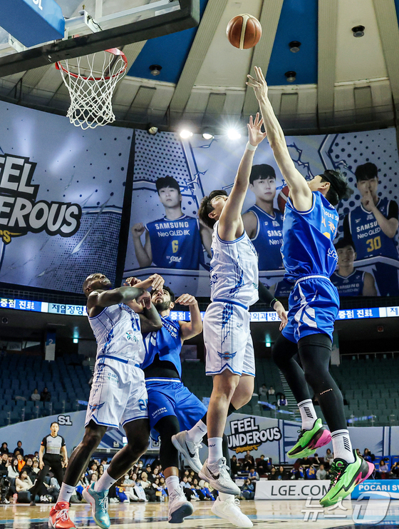 22일 오후 서울 송파구 잠실 잠실실내체육관에서 열린 2025-2026 LG전자 프로농구 정규리그 서울 삼성 썬더스와 대구 한국가스공사의 경기, 4쿼터 삼성 이관희가 레이업 슛을 하고 있다. 2026.1.22/뉴스1 © News1 김진환 기자