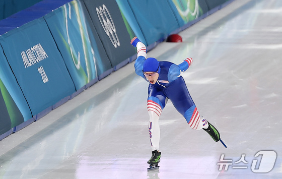 미국 스피드스케이팅 조던 스톨츠가 11일(현지시간) 이탈리아 밀라노 스피드스케이팅 스타디움에서 열린 2026 밀라노·코르티나담페초 동계올림픽 스피드스케이팅 남자 1000m 경기에서 질주하고 있다. 2026.2.12 © 뉴스1 김성진 기자
